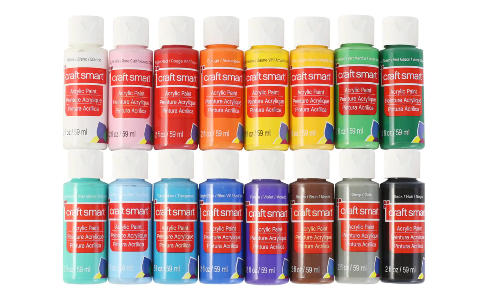 Craft Smart’s acrylic paints deliver rich pigmentation and smooth coverage, available in basics, metallics, glitters, and soft pastels for any artistic mood.