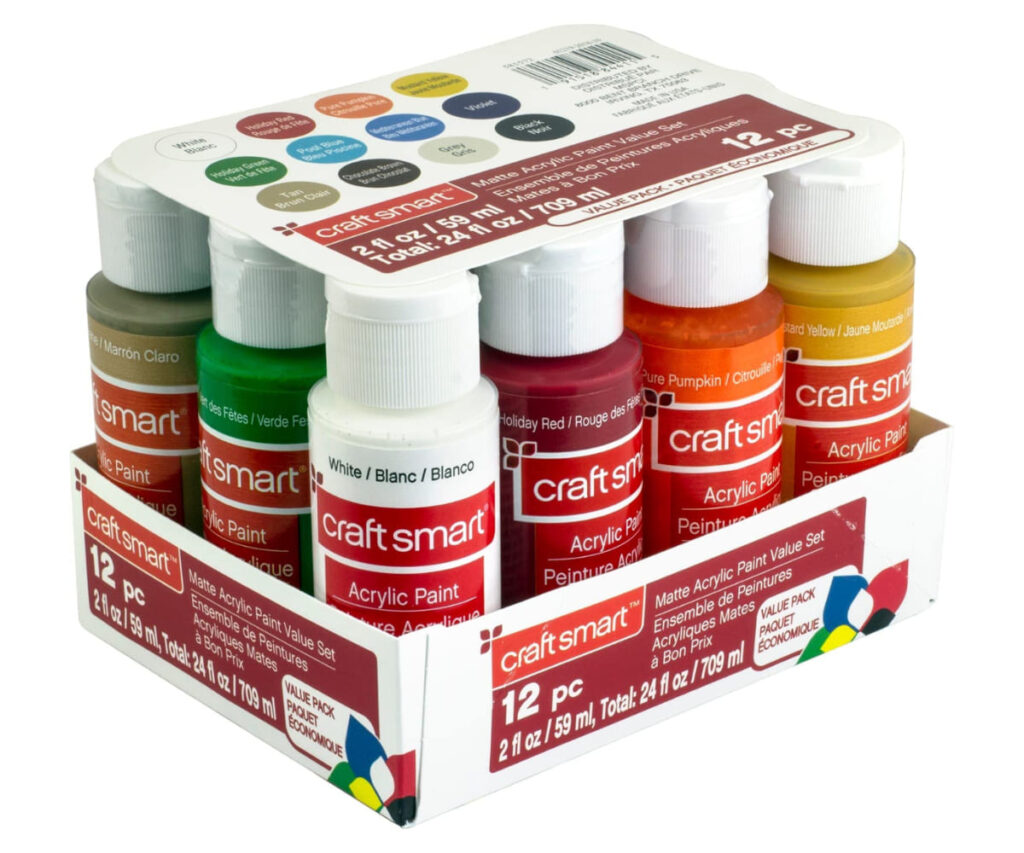 Craft Smart’s acrylic paints deliver rich pigmentation and smooth coverage, available in basics, metallics, glitters, and soft pastels for any artistic mood.
